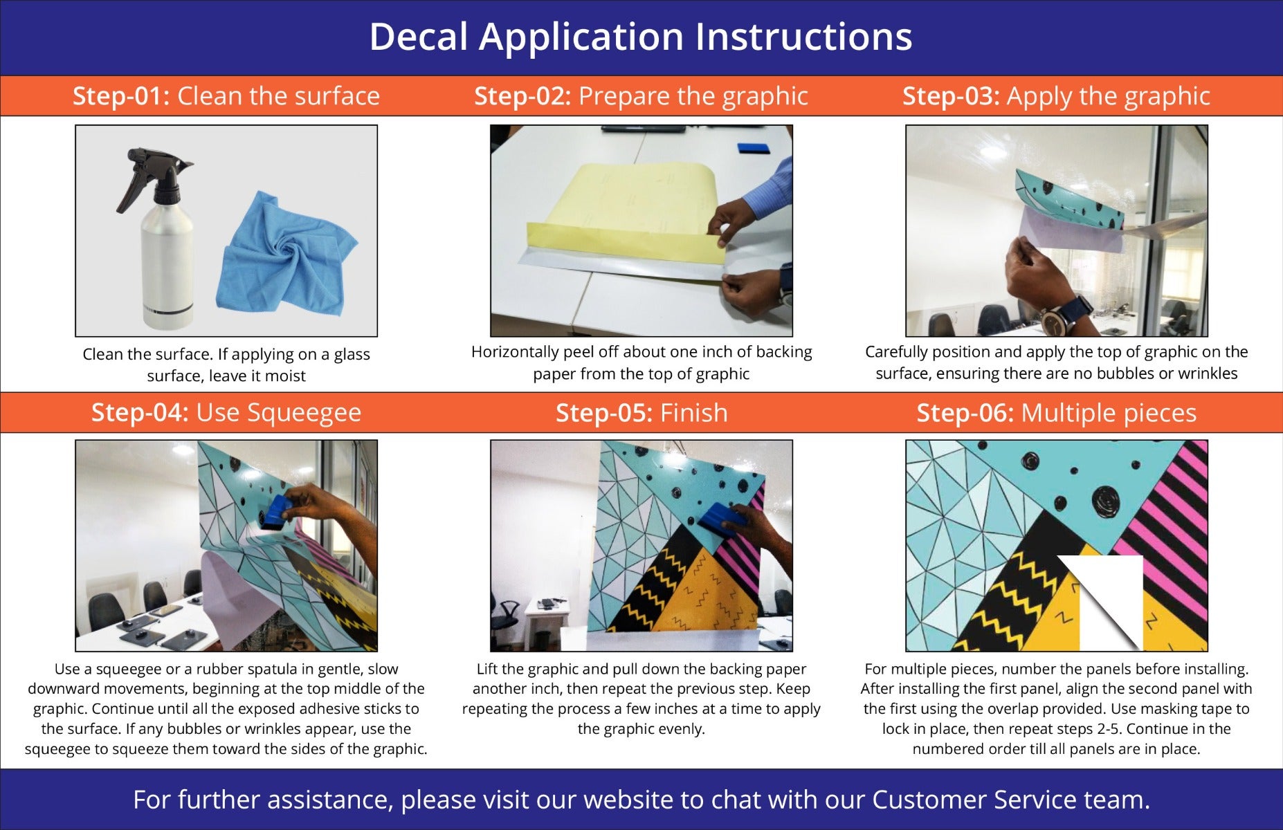 Perfect for floor decals for events, retail spaces, trade shows, or office branding. Apply easily using the included squeegee for bubble-free installation. Decal stickers are ideal for smooth surfaces such as glass, metal, high-quality plastic, sealed wood, and painted walls, as these surfaces enhance adhesion when clean and dry. Bulk orders receive special pricing, making these an economical choice for large-scale implementations.