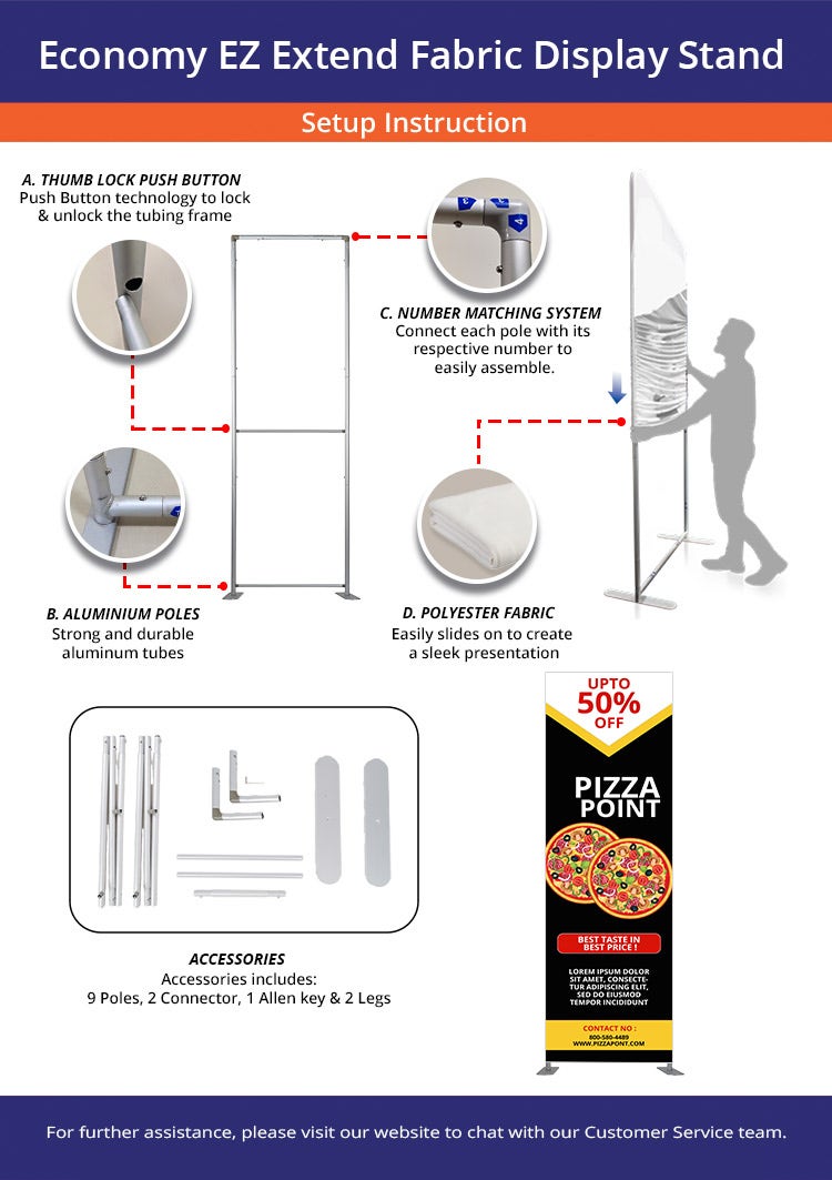 Our fabric display stand is available in various popular sizes to meet your specific needs. Whether you're looking for just the stand, just the banner, or the complete set, we've got the perfect solution for you. Customize your display with our online design tools and templates, or upload your own artwork. You can also collaborate directly with our professional designers to create a custom banner with stand that perfectly captures your brand's essence. Opt for a double sided banner stand to maximize visibility from all angles, ensuring your display is both practical and highly effective.