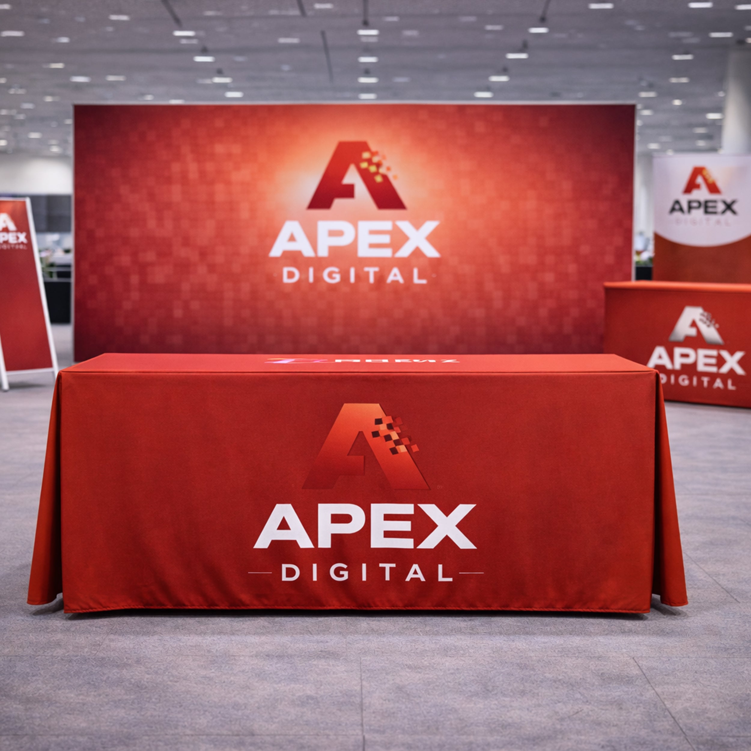 Our custom trade show table covers are both attractive and easy to care for. Suitable for regular machine washing with mild detergent or hand washing to extend their durability, they come with straightforward drying and ironing instructions. Additionally, you can opt for an acrylic sign holder to enhance the functionality of your display. Take advantage of our bulk discount opportunities with custom business table covers, whether you're equipping a table covers for wedding, small event, or a large corporation, these discounts can significantly lower your event costs.